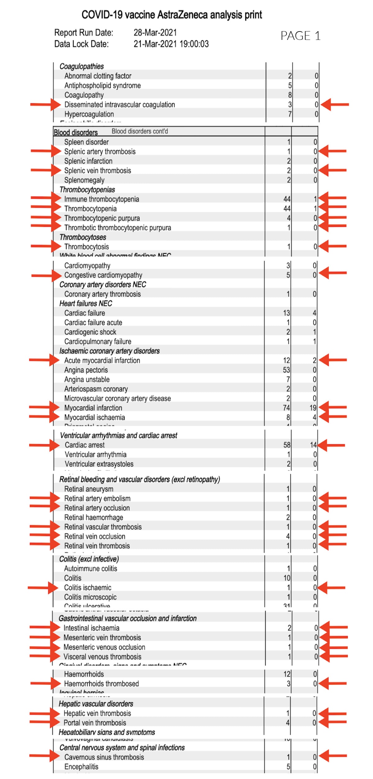 And also please note that not all of the Adverse Events shown by a red arrow may directly relate to blood clots (such as cardiac rest). But I have done my best to highlight information based on the limited data available. And whilst an Adverse Event is NOT a death, the data does not consider the longer-term consequences of any of the Events. And as this is a Stage III Global Trial, those longer-term consequences remain unknown.